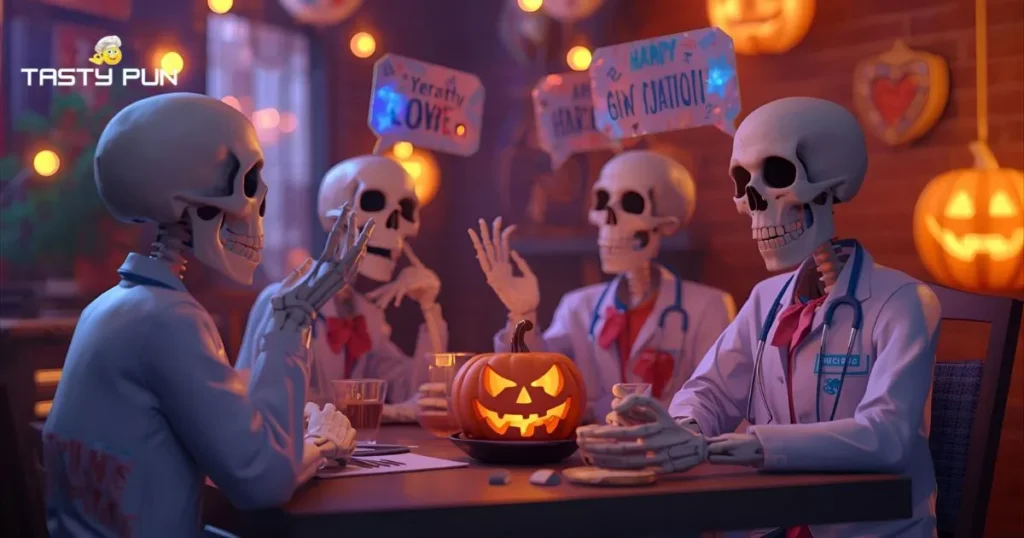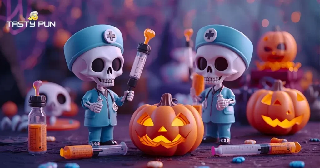 Medical Halloween Puns are funny wordplays that mix spooky Halloween themes with medical terms like doctors, nurses, skeletons, and anatomy.